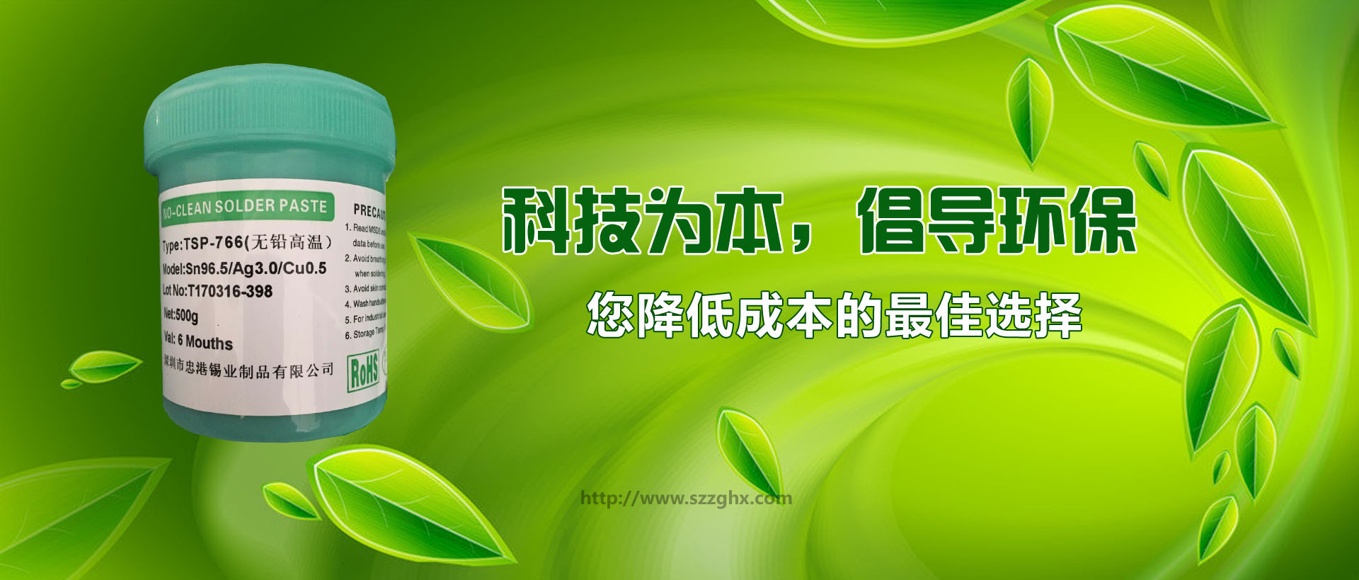 深圳市忠港錫業制品有限公司以專業生產、經營各種規格和用途的無鉛焊錫,環保焊錫,焊錫絲,焊錫條,焊錫線,焊錫膏,低溫錫線,焊鋁錫絲,不銹鋼焊錫絲,無鉛錫條,無鉛錫絲,無鉛錫膏, 無鉛低溫焊錫絲,無鉛免洗助焊劑,環保助焊劑,焊鋁助焊劑,焊鋁錫條,水溶性焊錫絲,不銹鋼助焊劑等為主的電子化工輔料企業。無鉛產品己通過SGS檢測,并獲中國中輕產品[質量、信譽雙保障示范單位]和國際ISO9001:2000質量認證。 自成立以來,以優良的產品品質、良好的企業信譽和開拓進取的企業精神,建立了良好的社會關系。經過多年的發展和努力,目前廣州偵探公司已經在國內已建立穩固的銷售網絡和系統,贏得了行業內廣大客戶的贊譽,并倍受用戶信賴,現正成為珠江三角洲地區最具實力的專業焊錫條、焊錫絲、錫膏、助焊劑制造供應商之一。